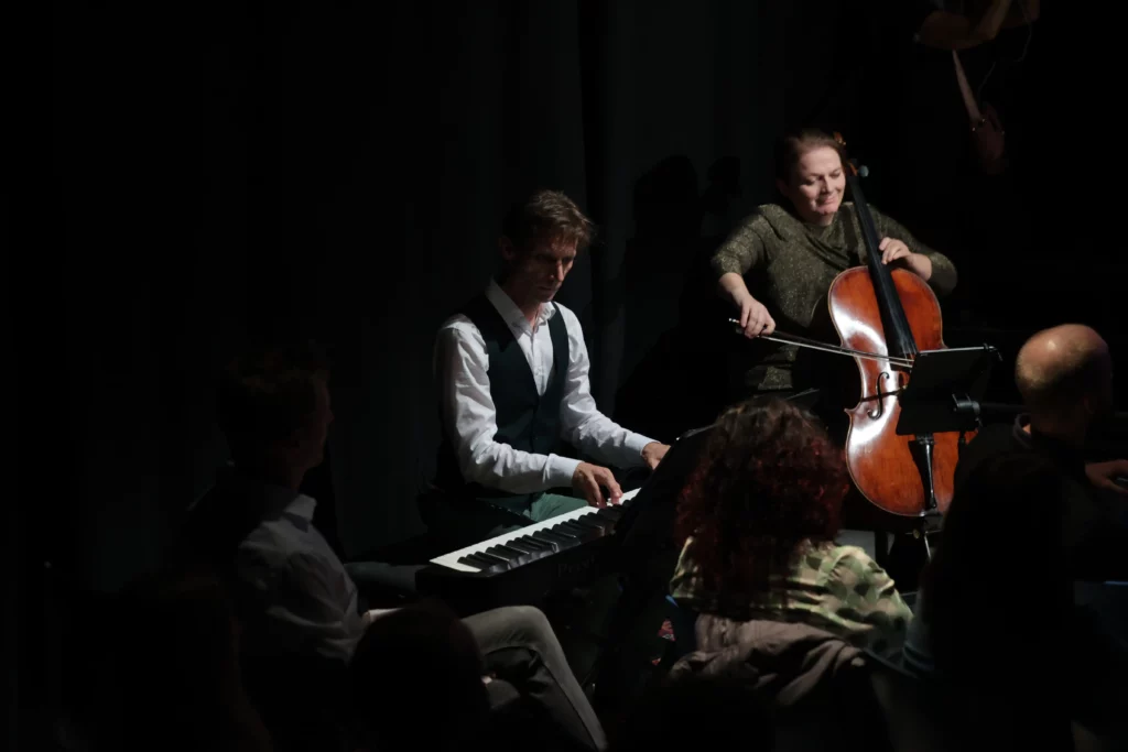Live-Musik: Herzglut – Joachim Claucig, Irene Frank, Angela Kiemayer (Klavier, Cello, Gesang)